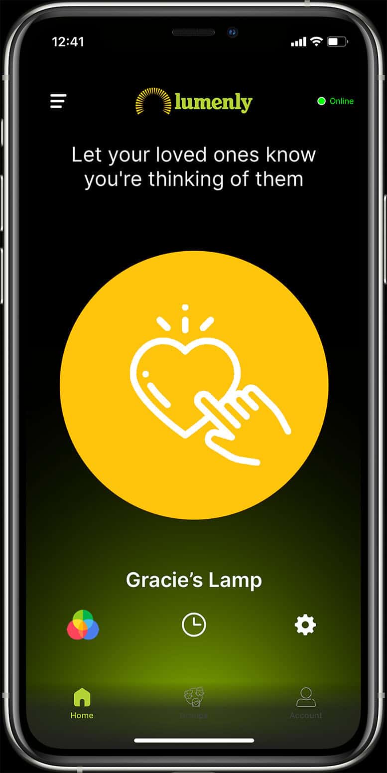 When you tap your lamp, your unique color is sent to all other lamps in the group. This signals to your loved ones that you’re thinking about them.
