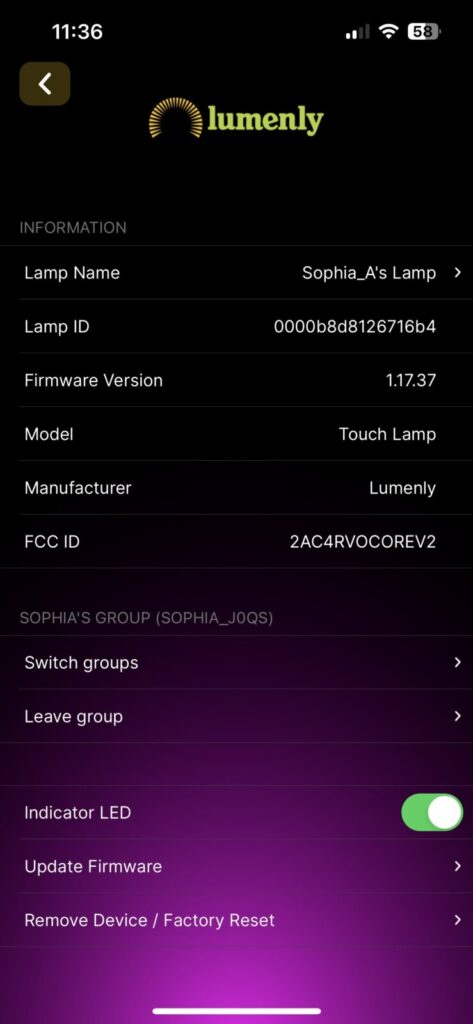 What is a Group? A Group is what connects your lamp with that of your loved ones. When you tap your lamp, everyone in your Group will get your saved color preference and message. When someone else in your Group taps their lamp, you will receive theirs.